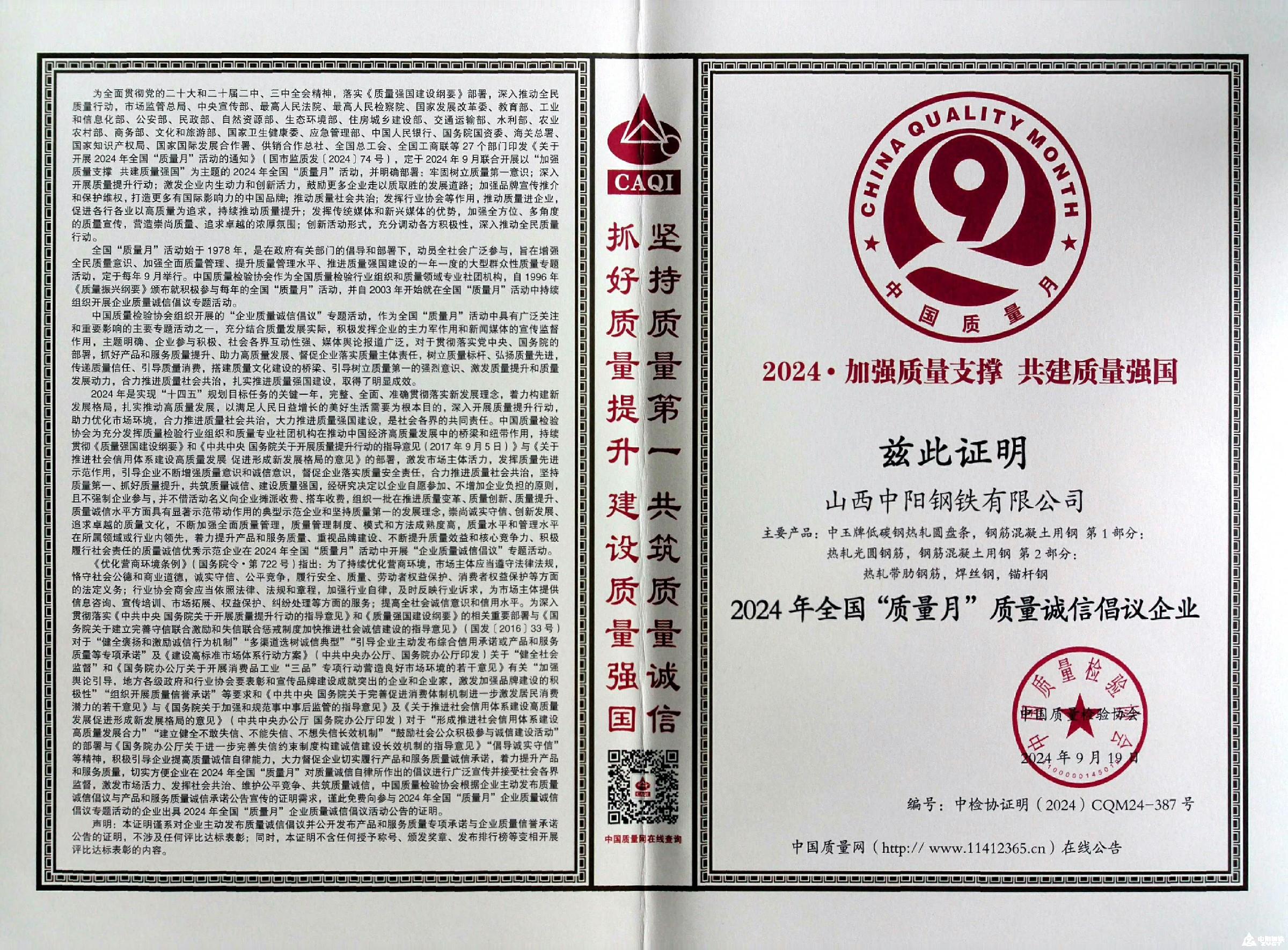 2024年全國“質(zhì)量月”質(zhì)量誠信倡議企業(yè)